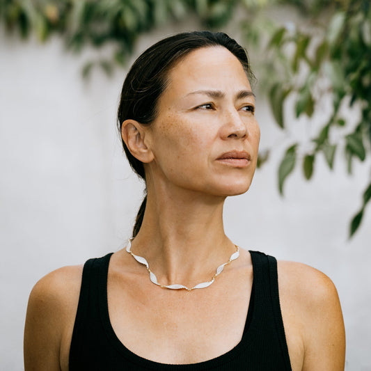 Regular price £1,675.00Regular priceUnit price perSale price £1,675.00Beautifully outlining the neckline in a sea of silver - distinct drift elements flow like waves in this statement piece. Tipped with gold granule droplets, the elements are delicately interconnected - bringing exquisite textural contrast.