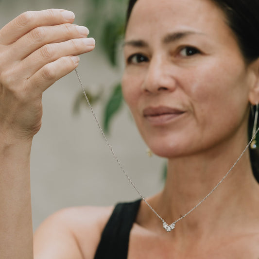 Regular price From £1,350.00Regular priceUnit price perSale price From £1,350.00This delicate granule pendant is set with three ethically sourced white diamonds, embedded within rich 14ct yellow granules.