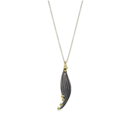 Regular price £225.00Regular priceUnit price perSale price £225.00A flow of curved silver strands - tipped with 18ct gold granules is suspended from a fine chain in this sweeping pendant. This design is also available in oxidised silver for additional depth and contrast.