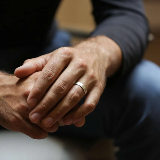 Regular price From £550.00Regular priceUnit price perSale price From £550.00This beautiful hand forged ring is made in 9ct yellow gold, with a soft matt texture. This ring is available in a variety of widths and materials.