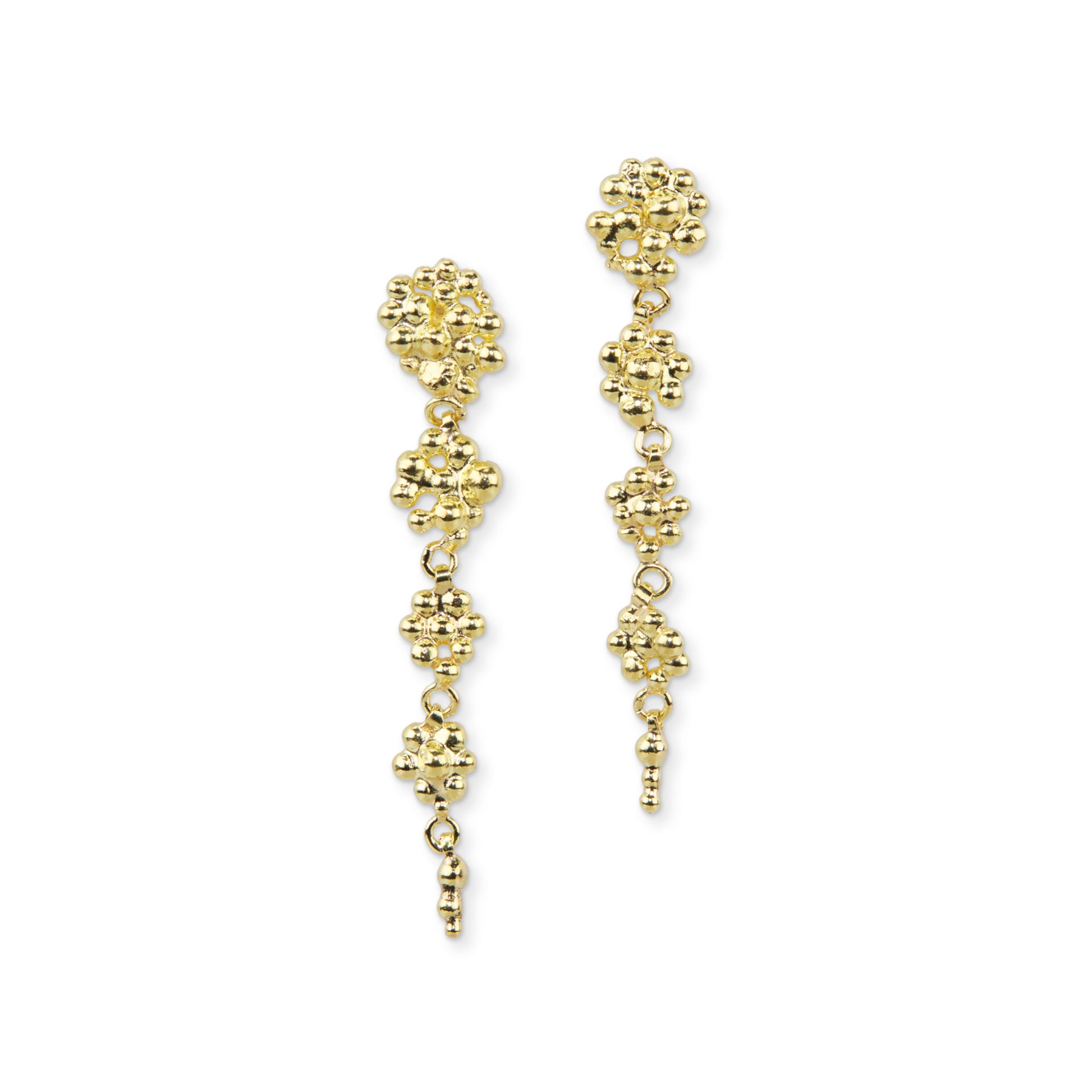 Delicate berry earrings, featuring five berry components handmade in 18ct yellow gold.