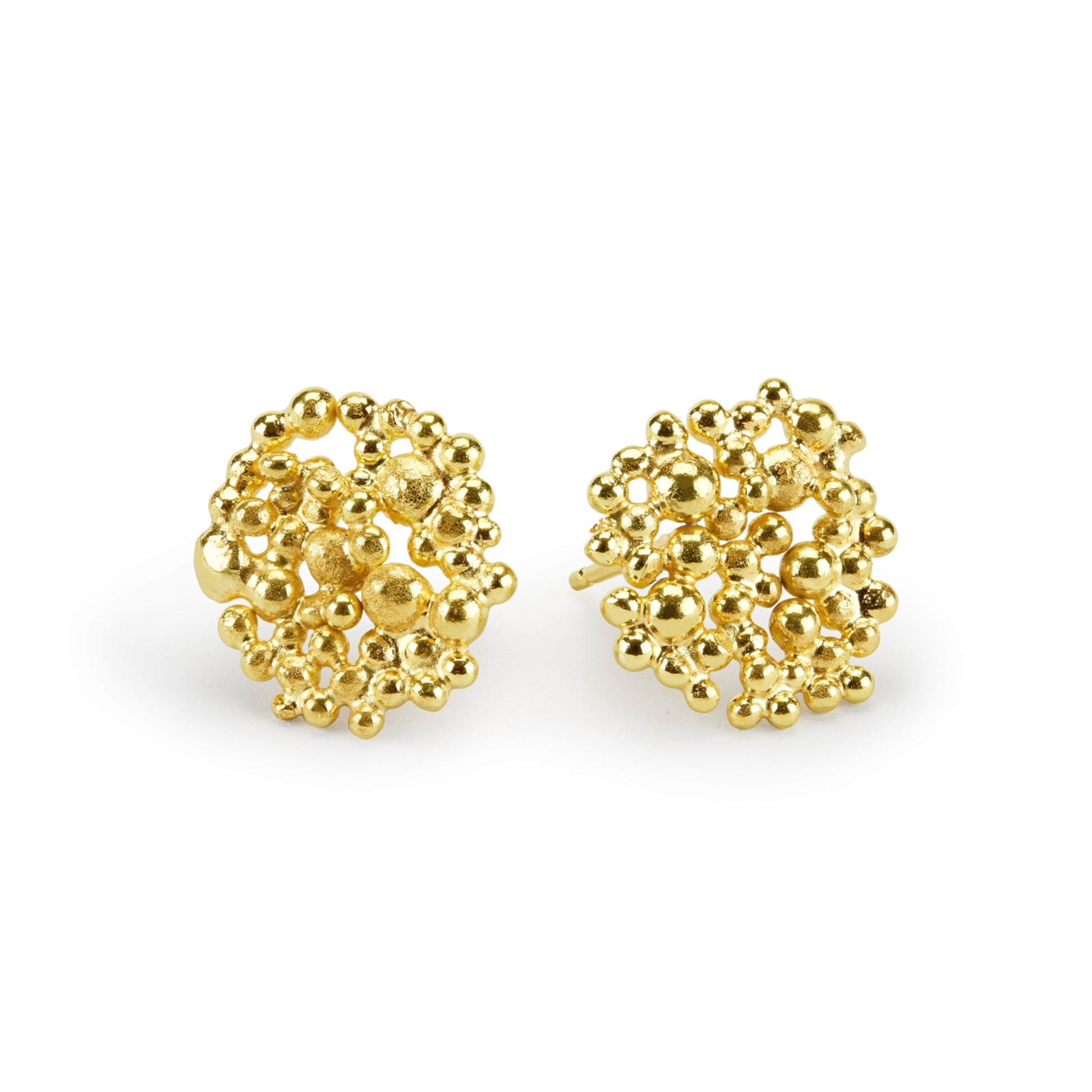 A glorious grouping of fused 18ct gold granules seemingly float together in these beautiful stud earrings.