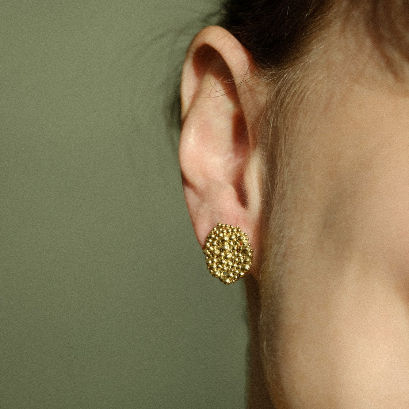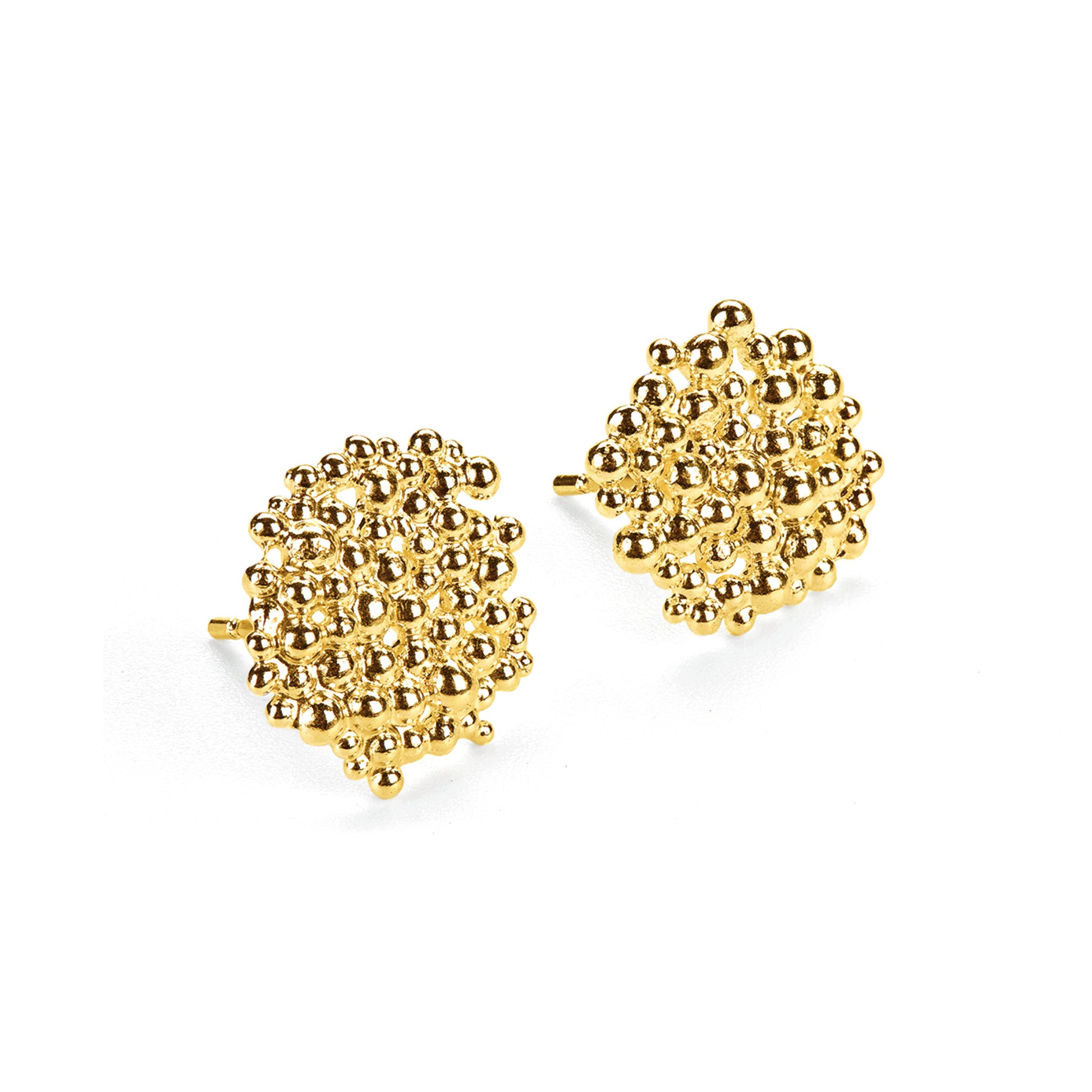 A glorious grouping of fused granules seemingly float together to form these pretty gold plated Berry earrings - available in four different sizes.