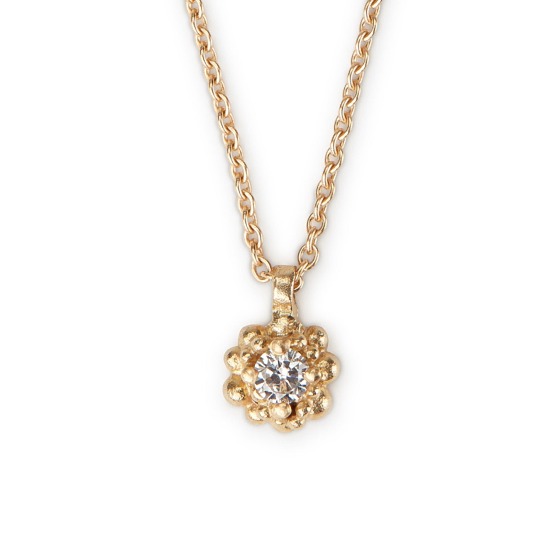 Pretty Cluster pendant in 18ct yellow gold, set with a shimmering diamond.