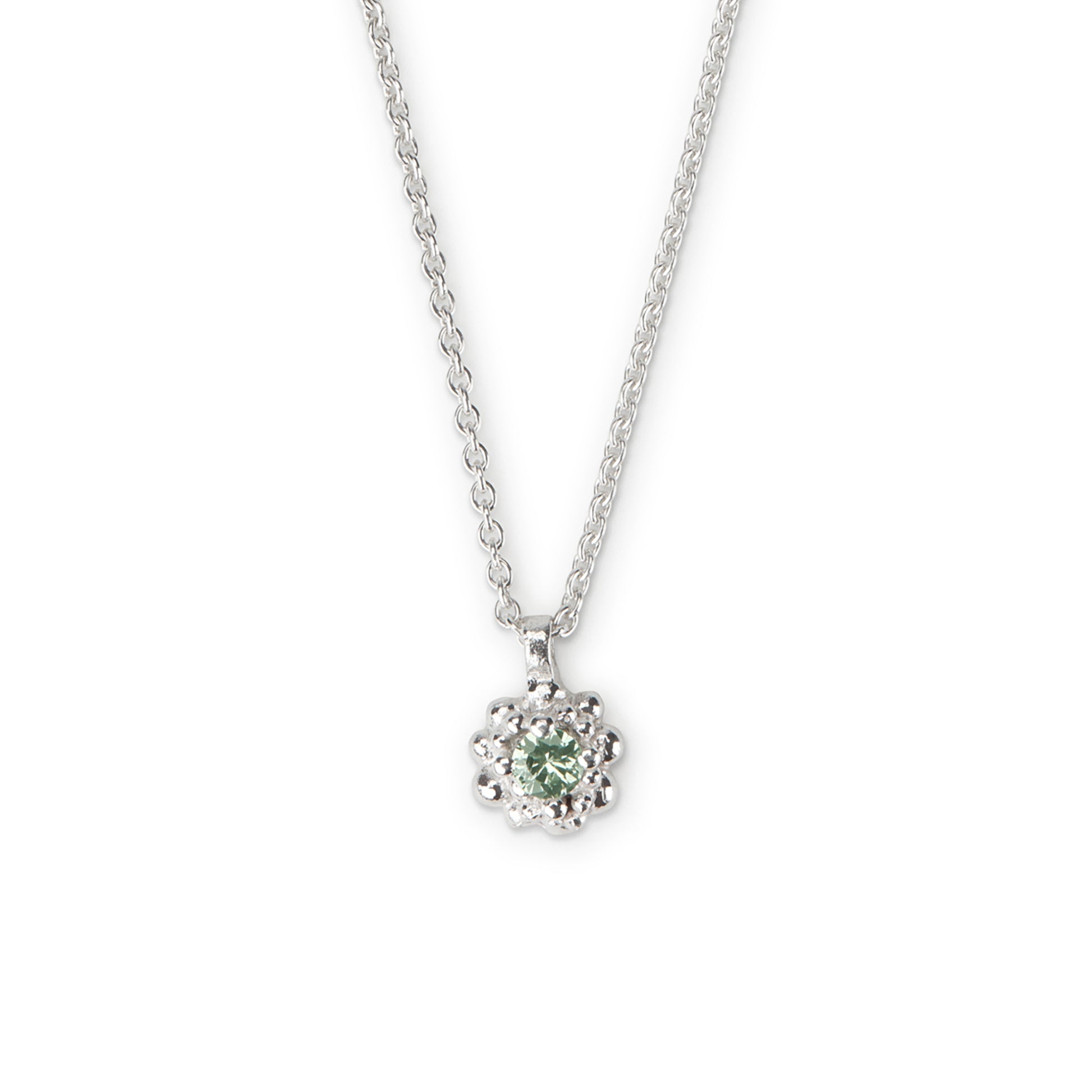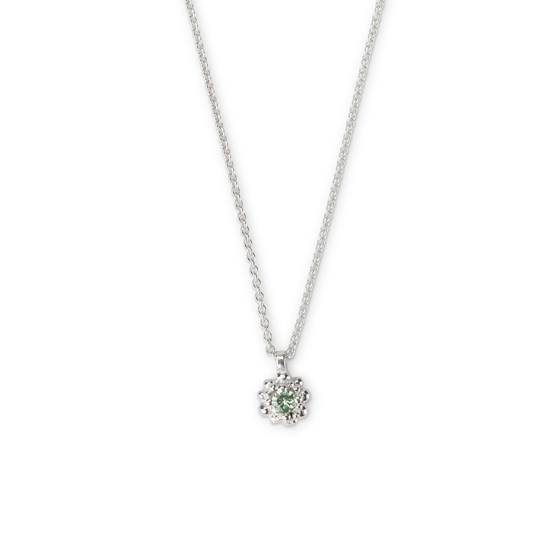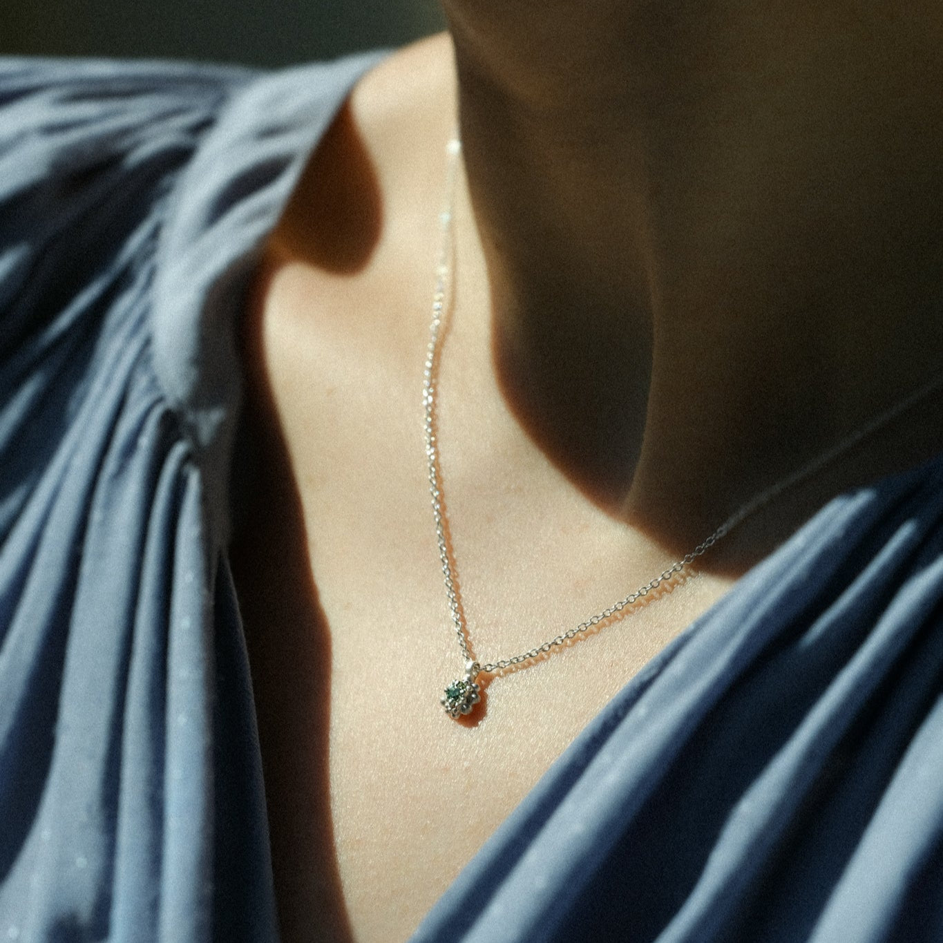 Pretty Cluster pendant in recycled silver, set with a shimmering sapphire.