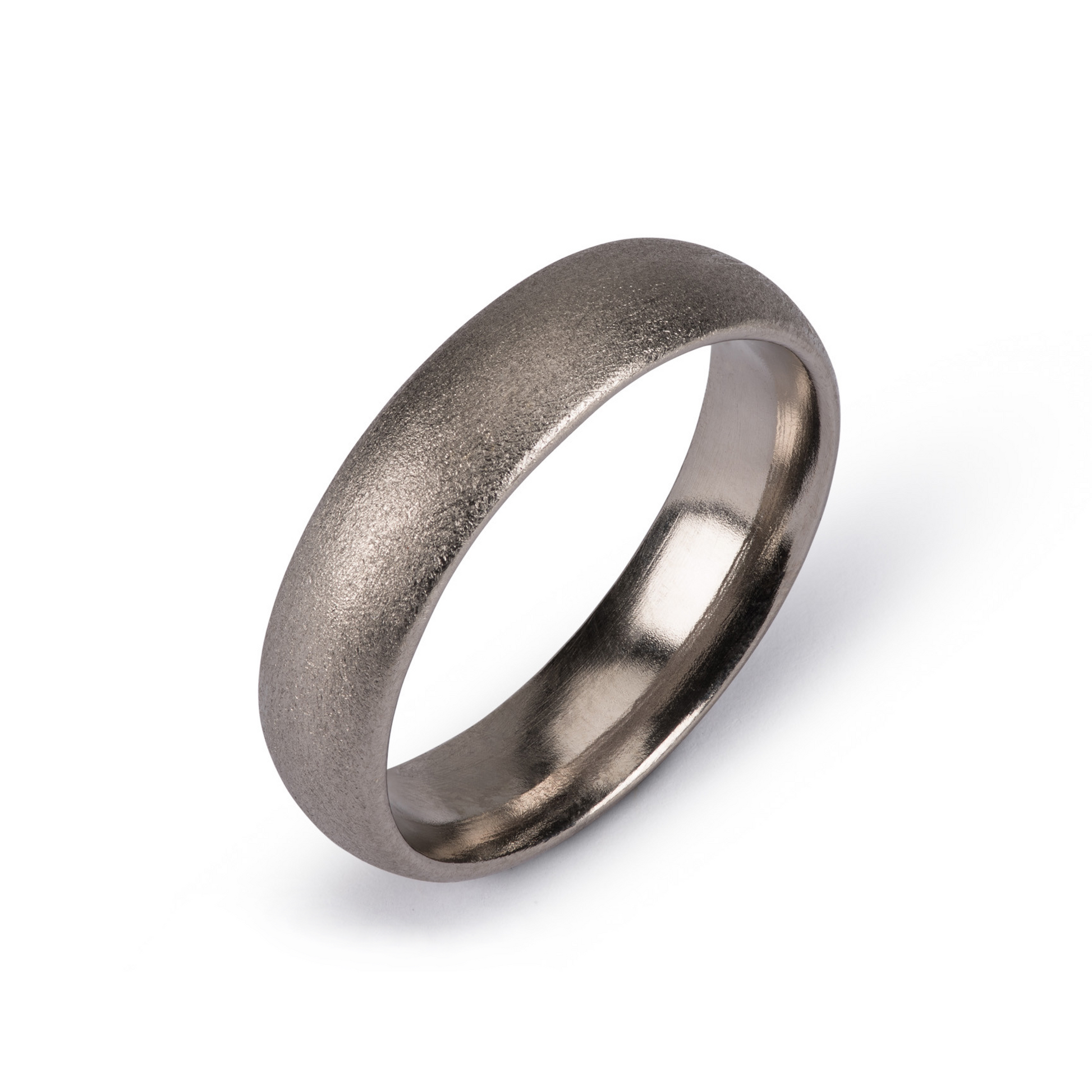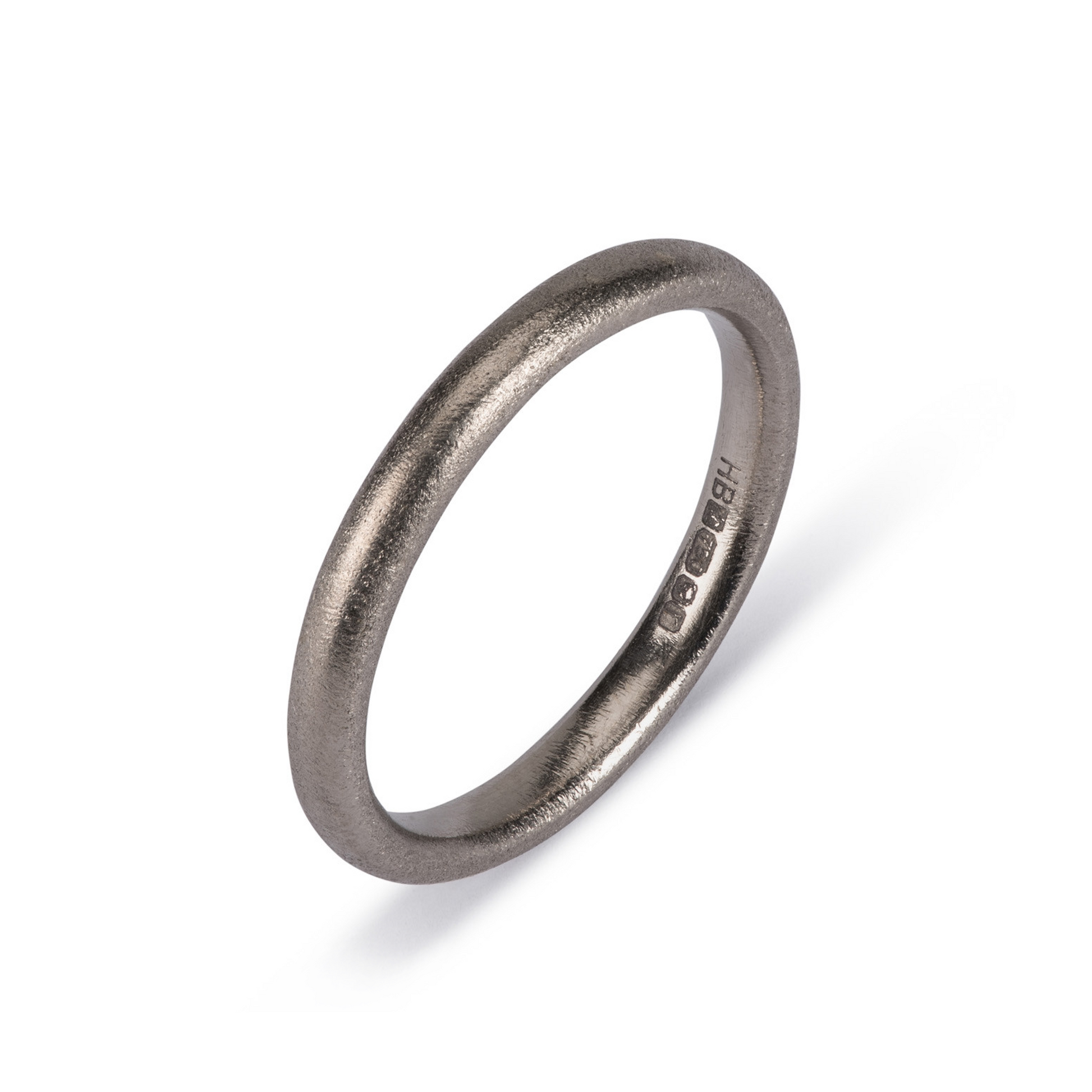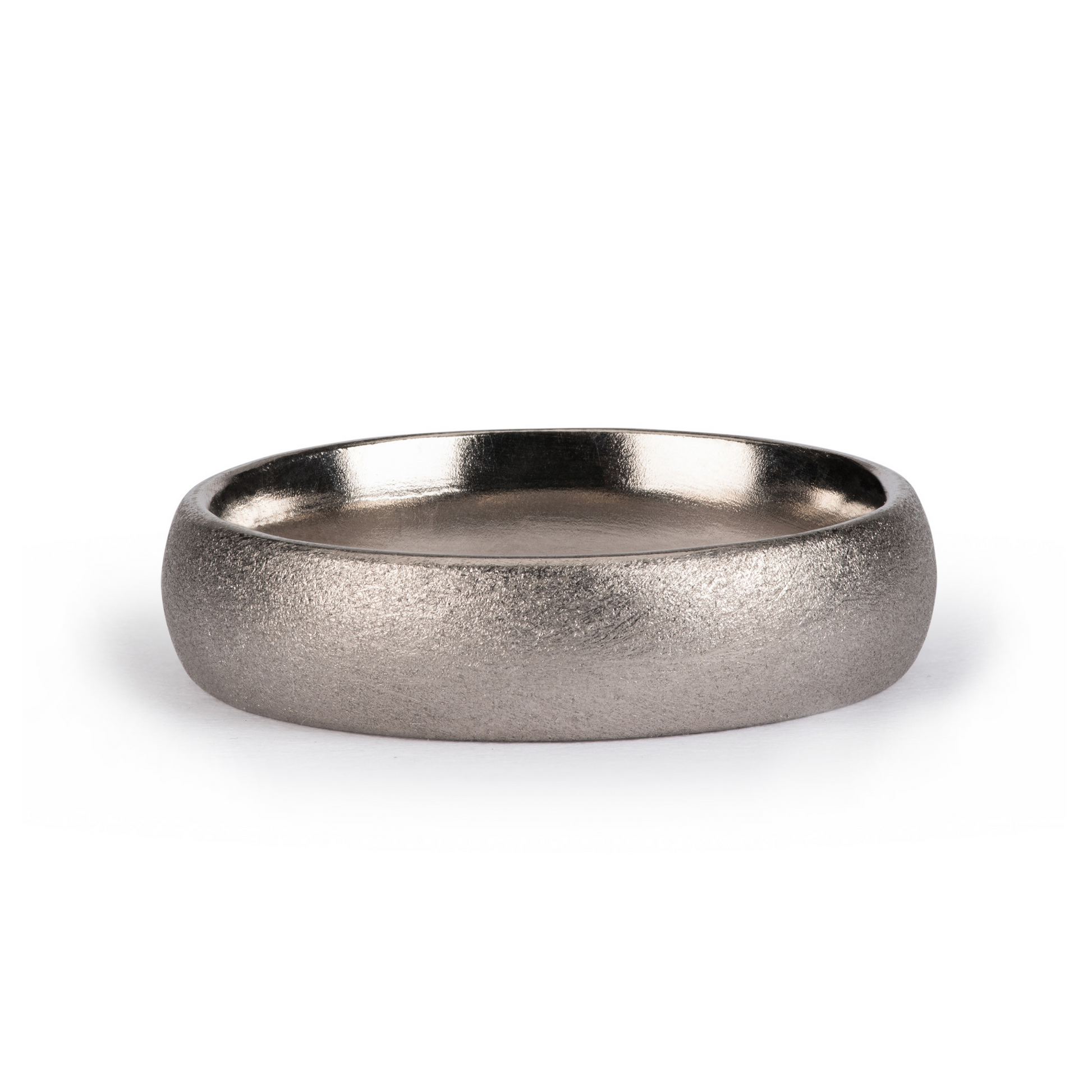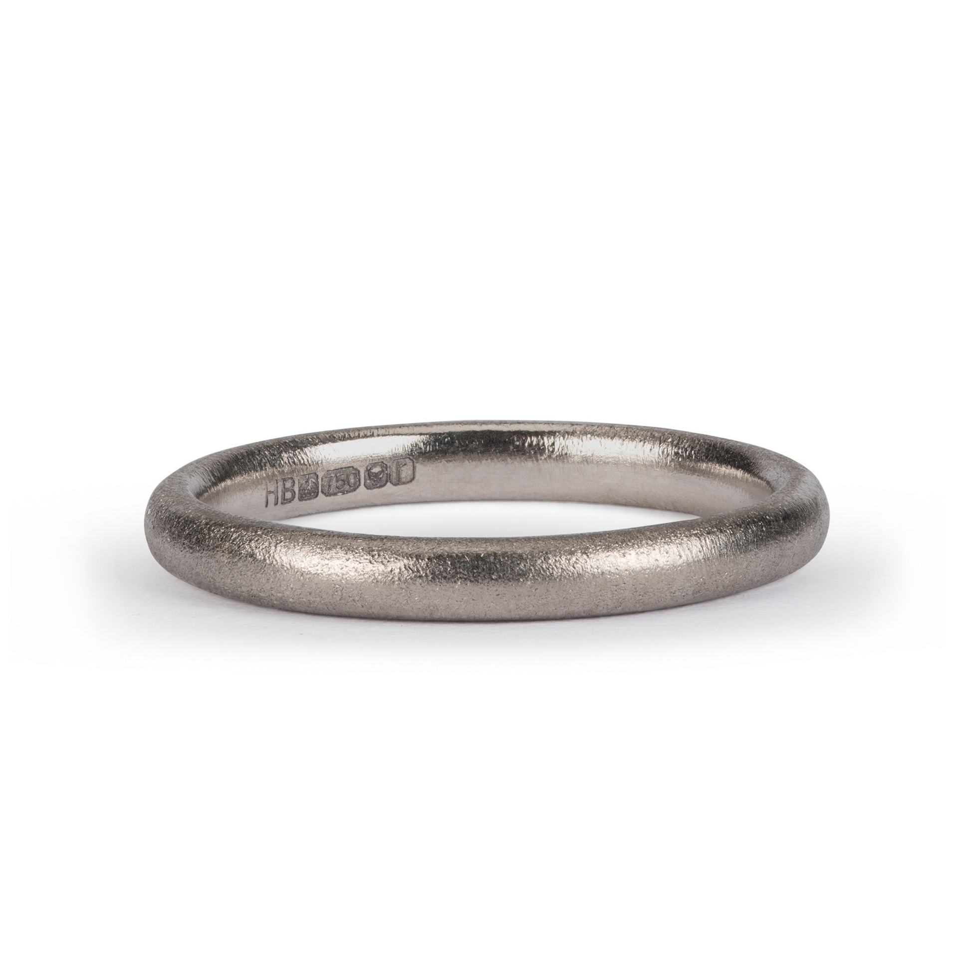 This 18ct white gold band is beautifully shaped with soft curved edges and finished with a matt brush texture.