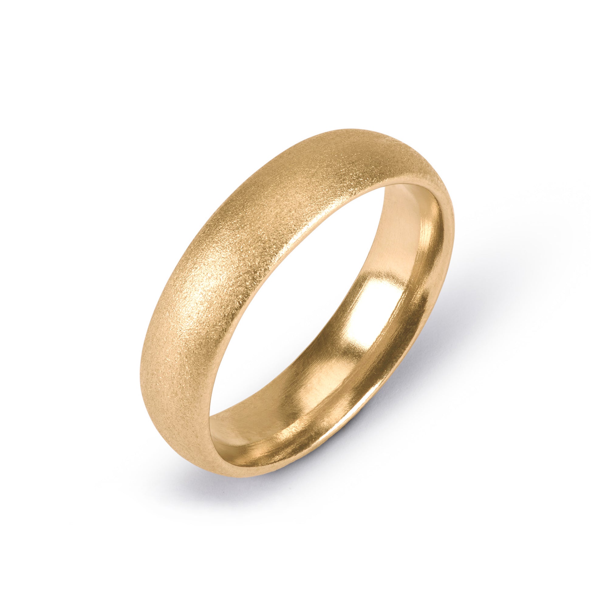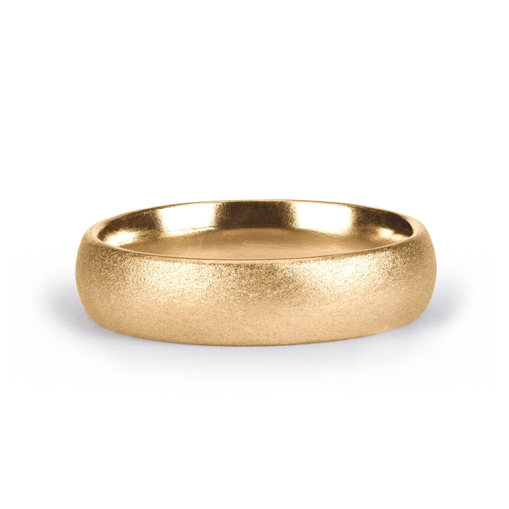 This 9ct yellow gold band is beautifully shaped with soft curved edges and finished with a matt brush texture.
