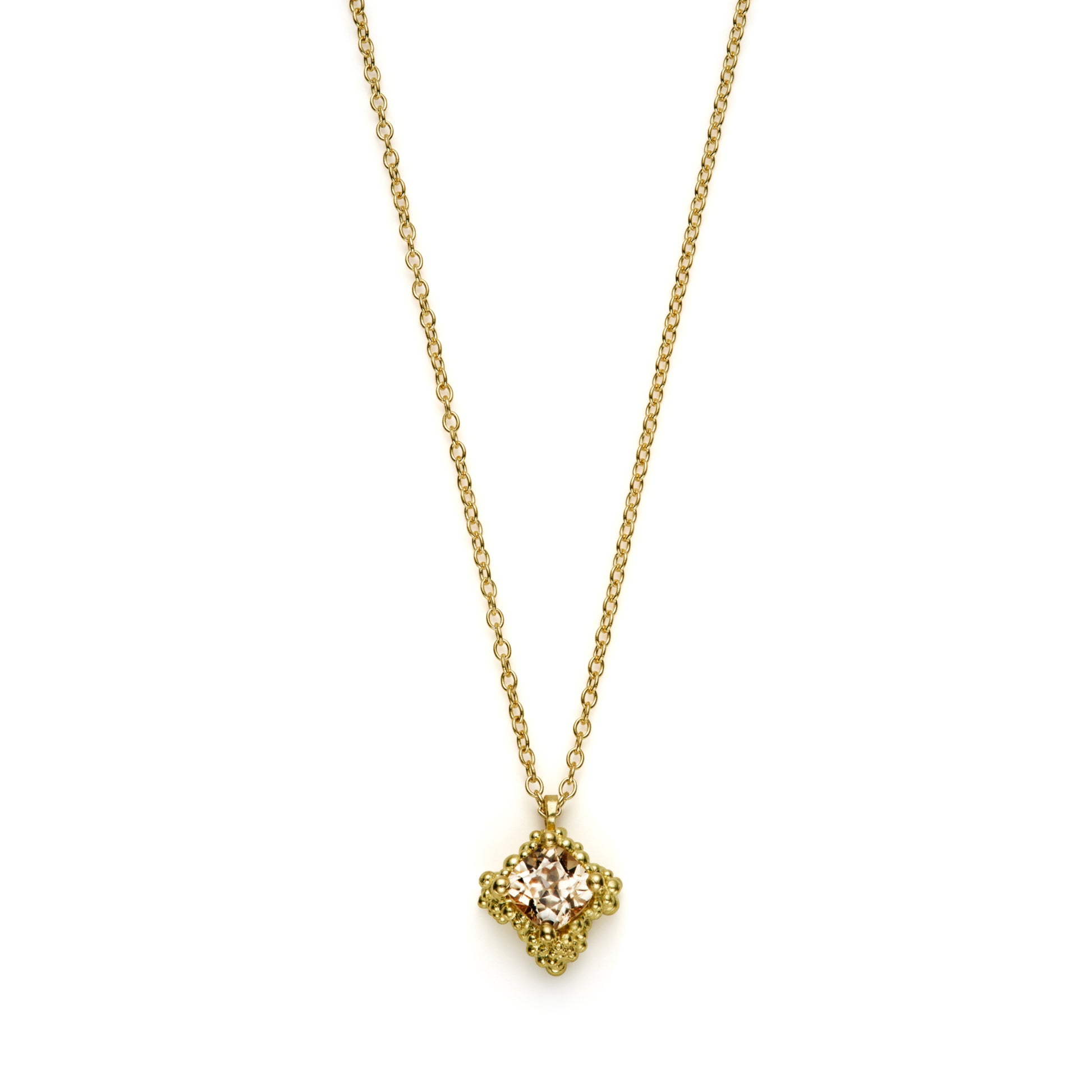 Capturing the light beautifully - this sparkling cushion-cut Australian Zircon is richly nestled in warm 18ct gold granulation and delicately suspended from a fine chain.