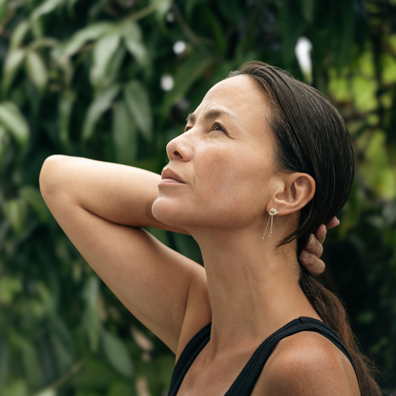 The bottom drop element can be removed and the citrne earrings can be worn alone as a stud.