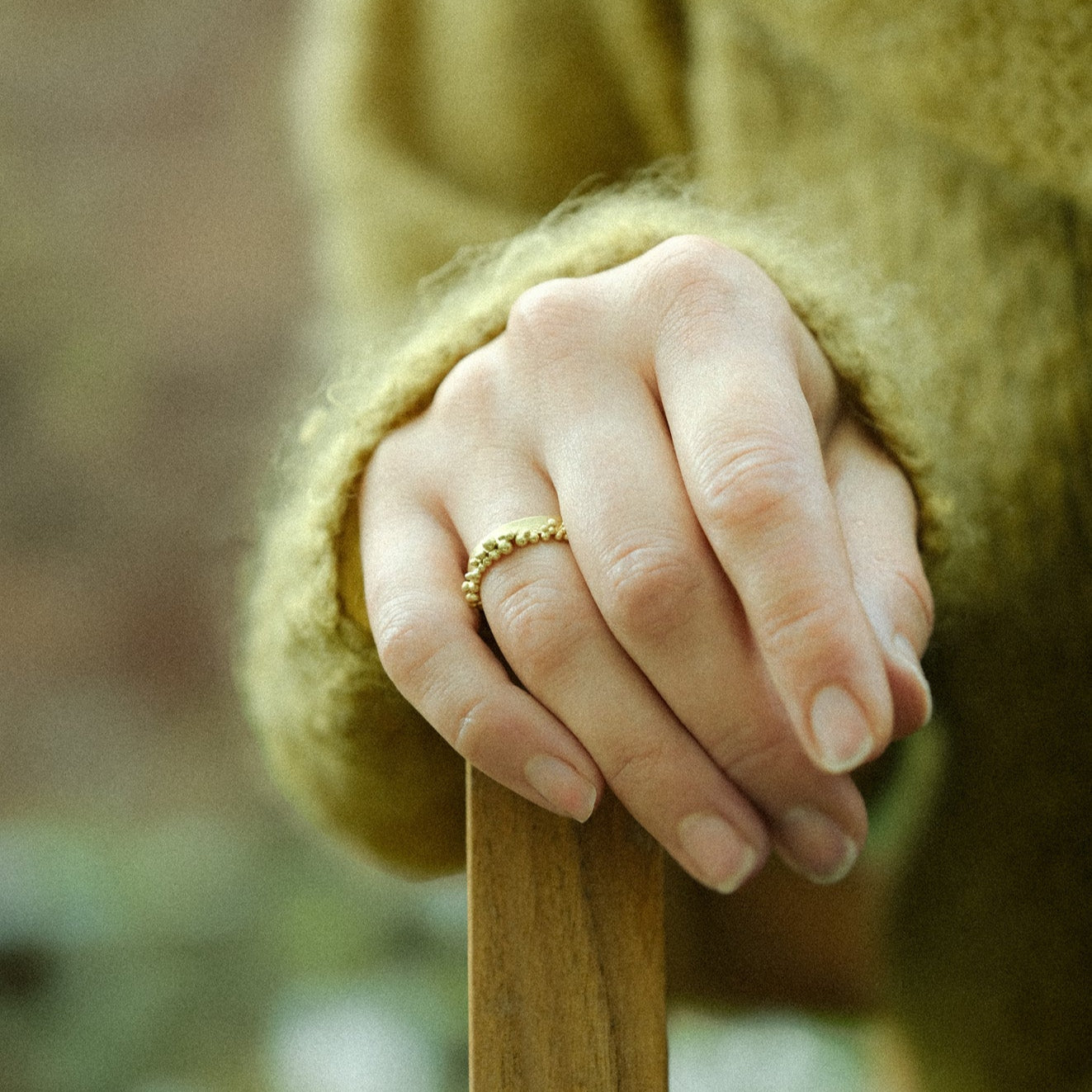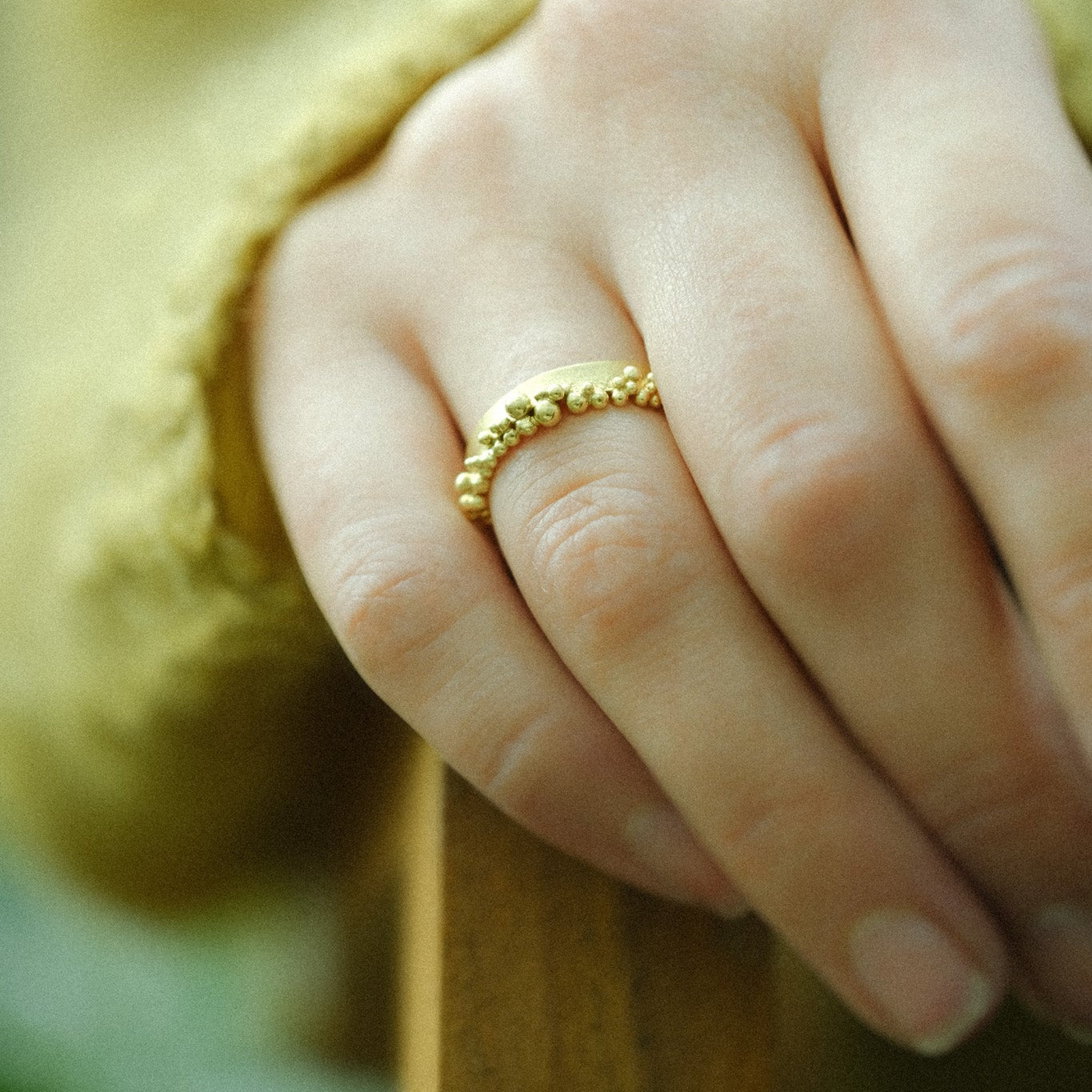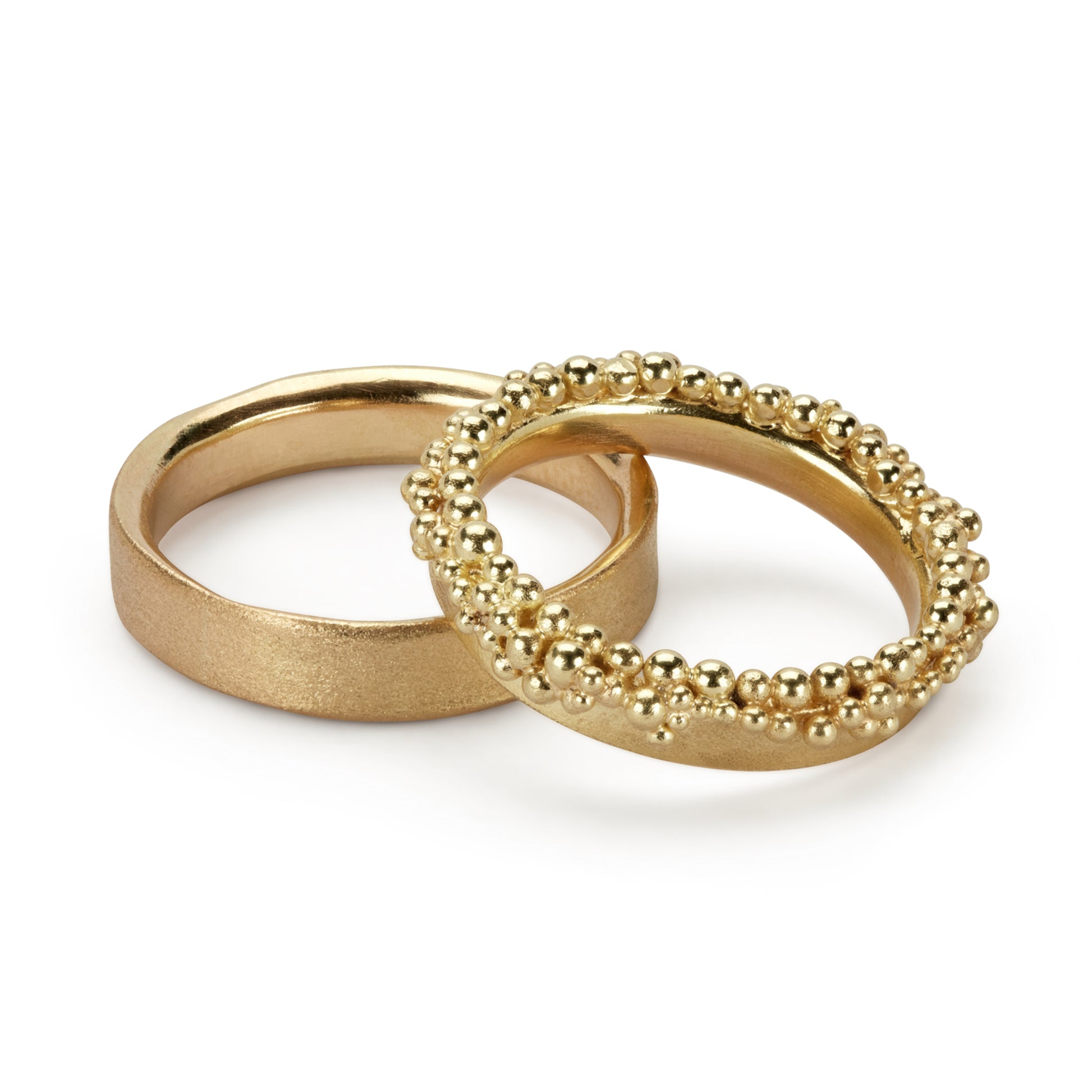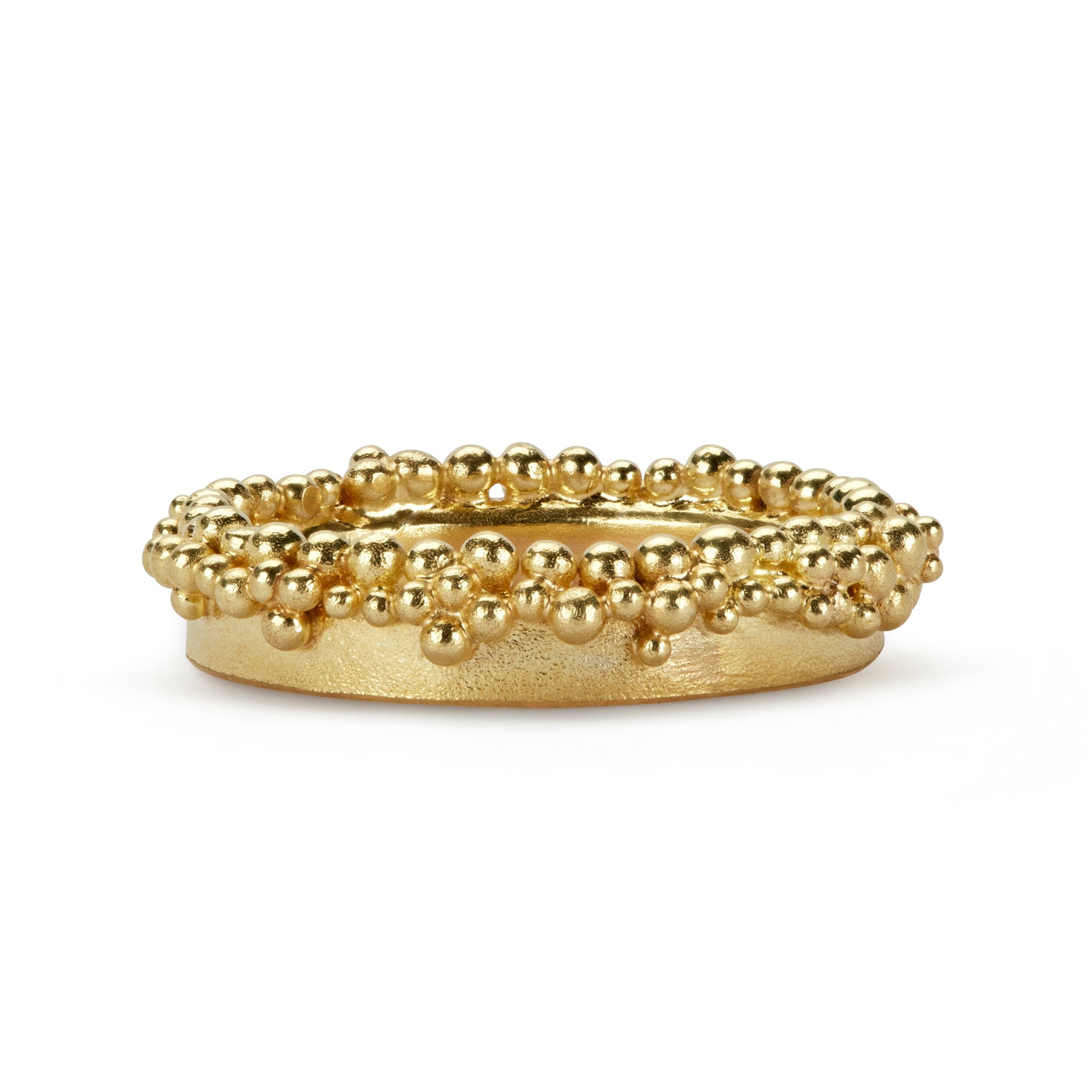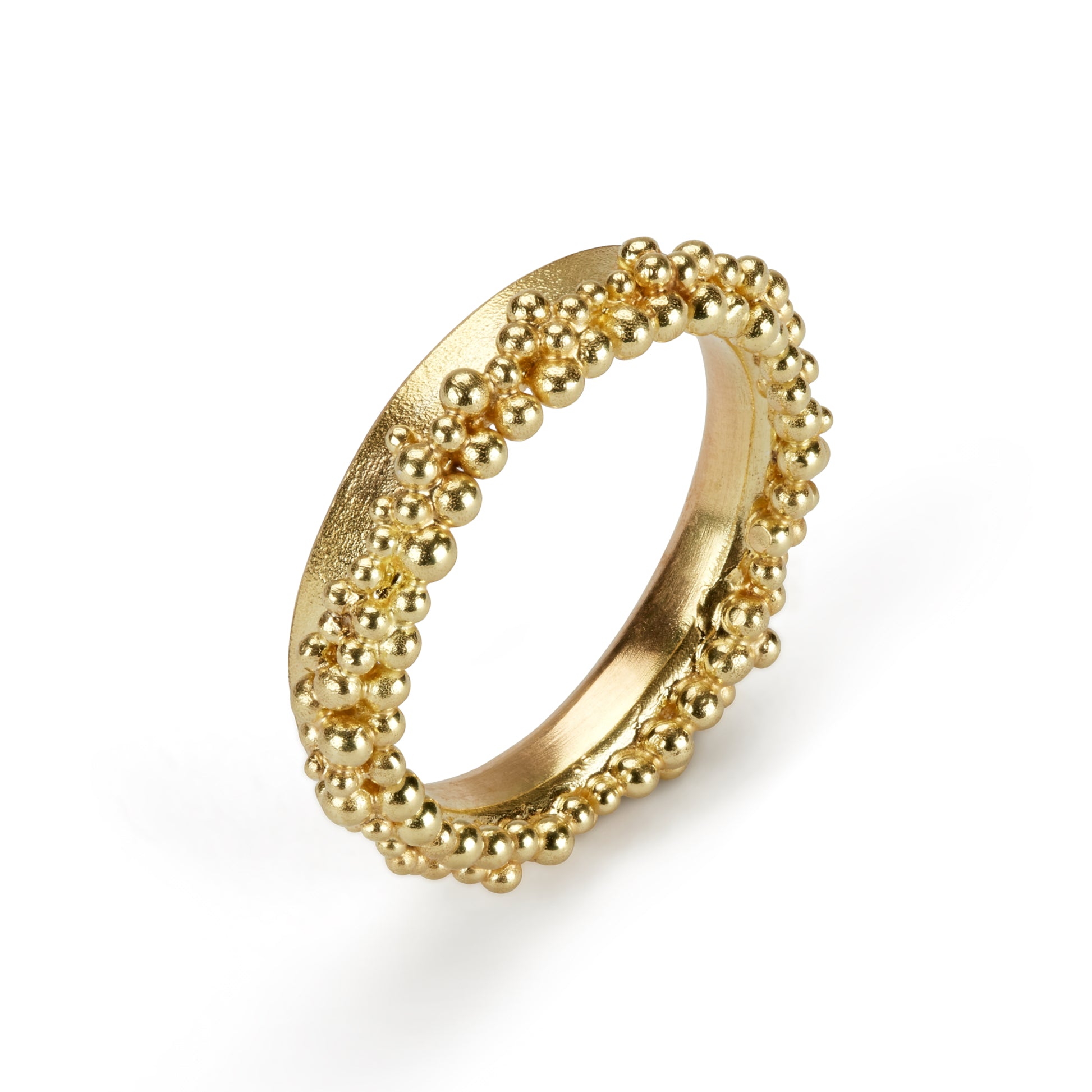 A generous band of 18ct yellow gold is edged with a froth of glorious granulation.