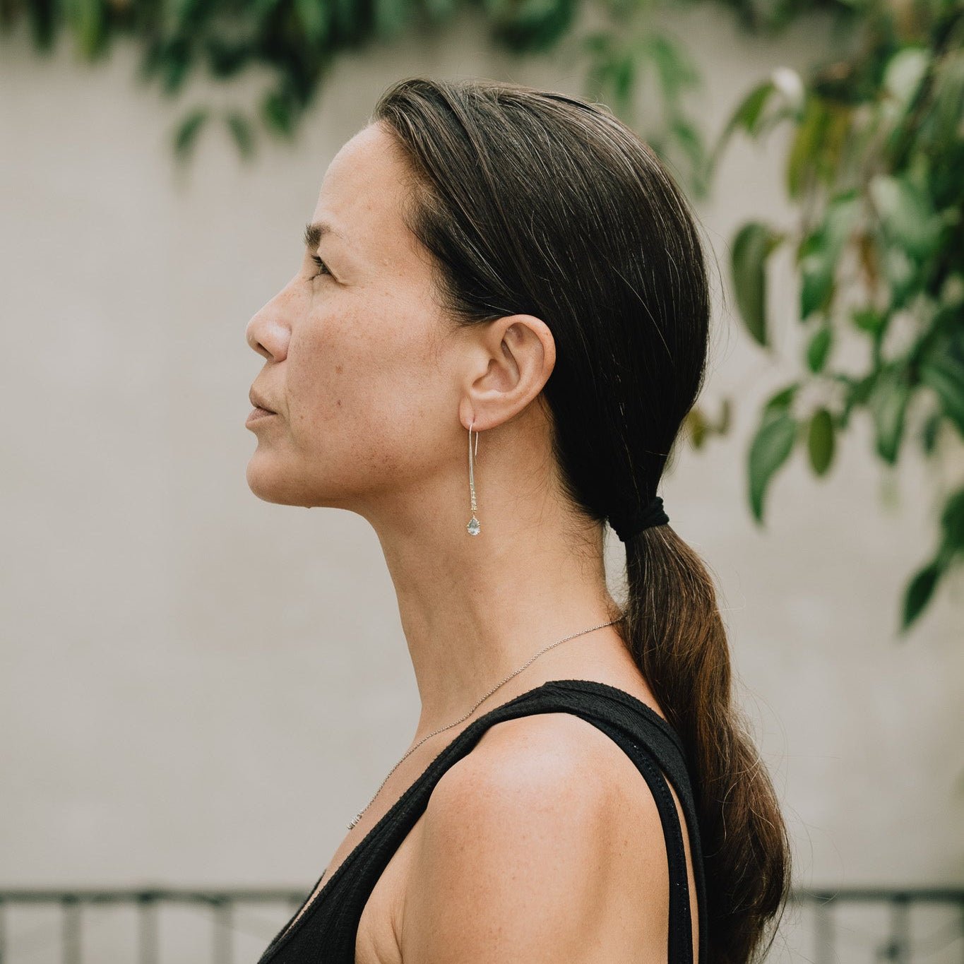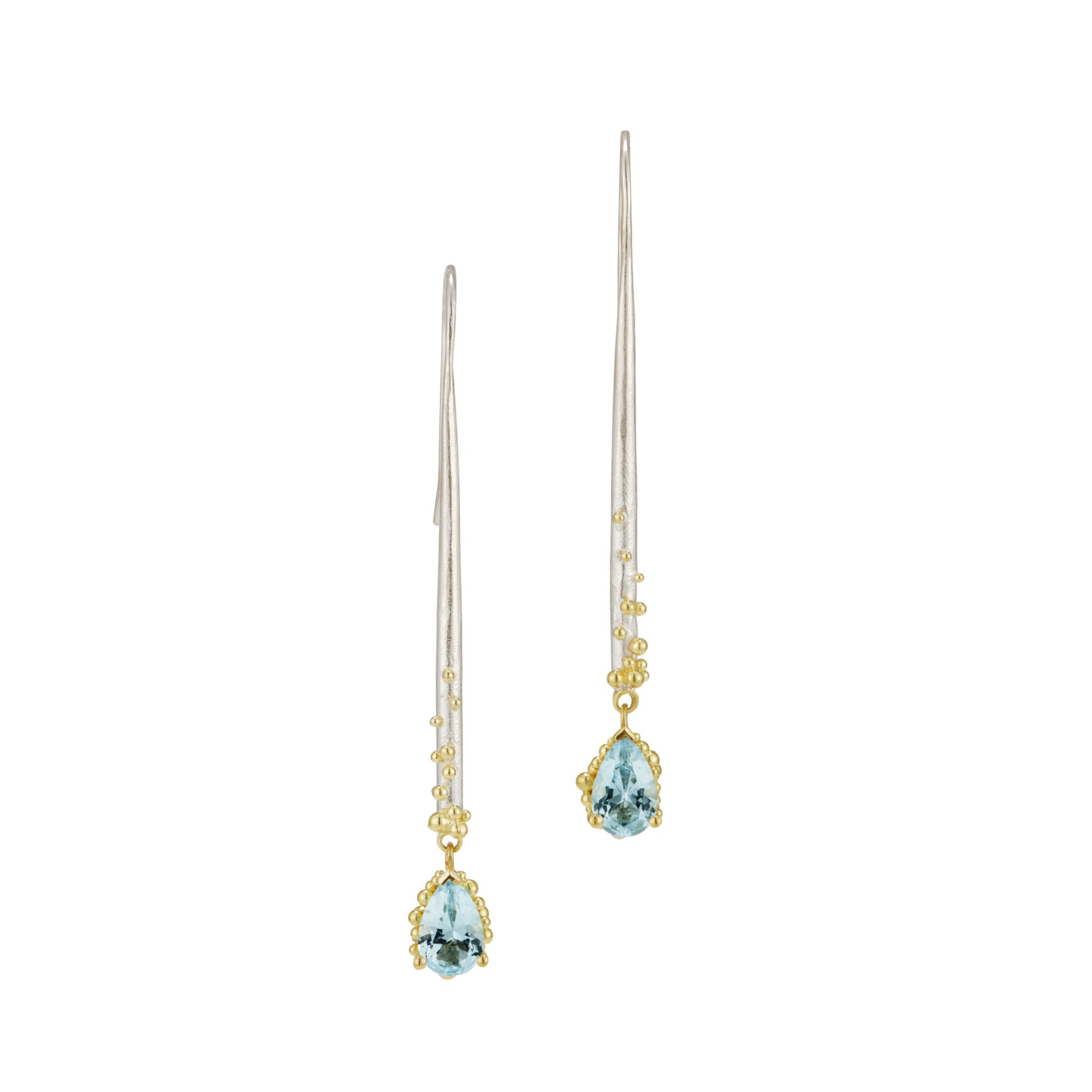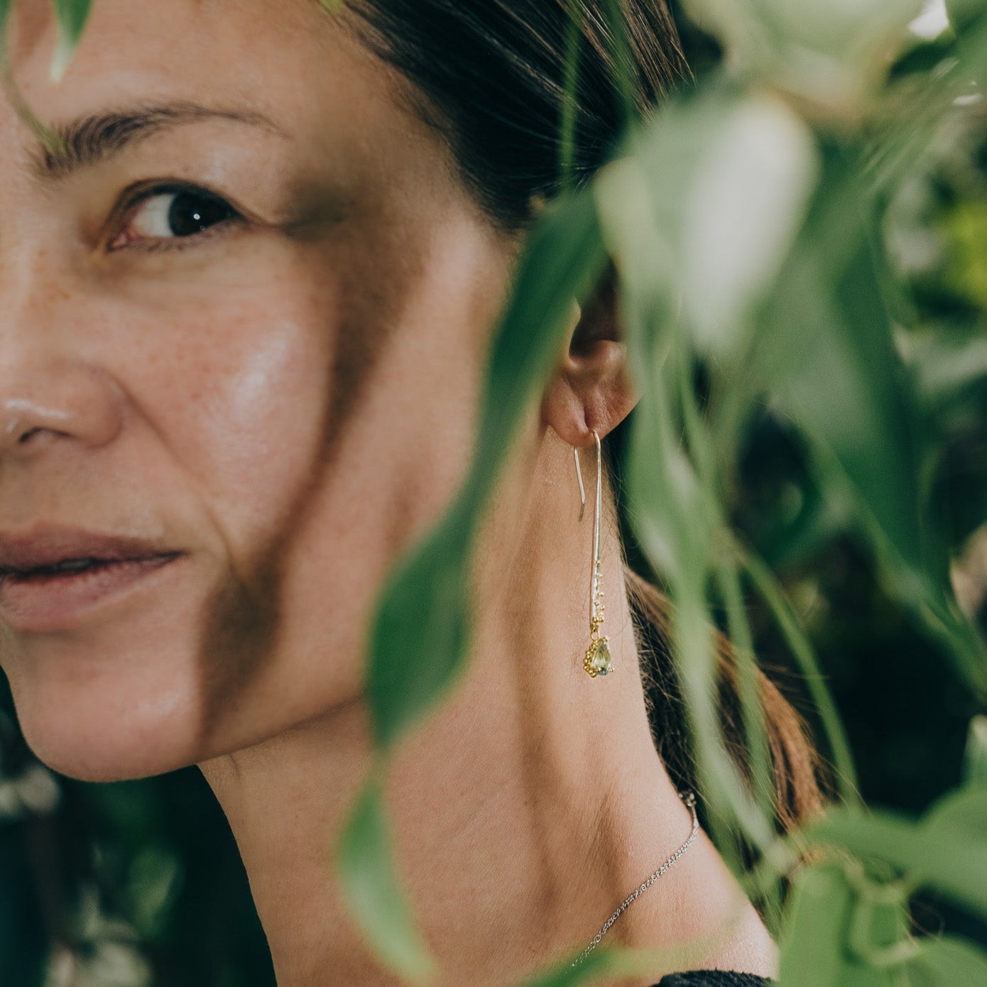 These showstopper-drop-earrings feature adorned strands of silver which suspend jewelled topaz raindrop clusters. Created in silver and encrusted with droplets of 18ct gold granulation.