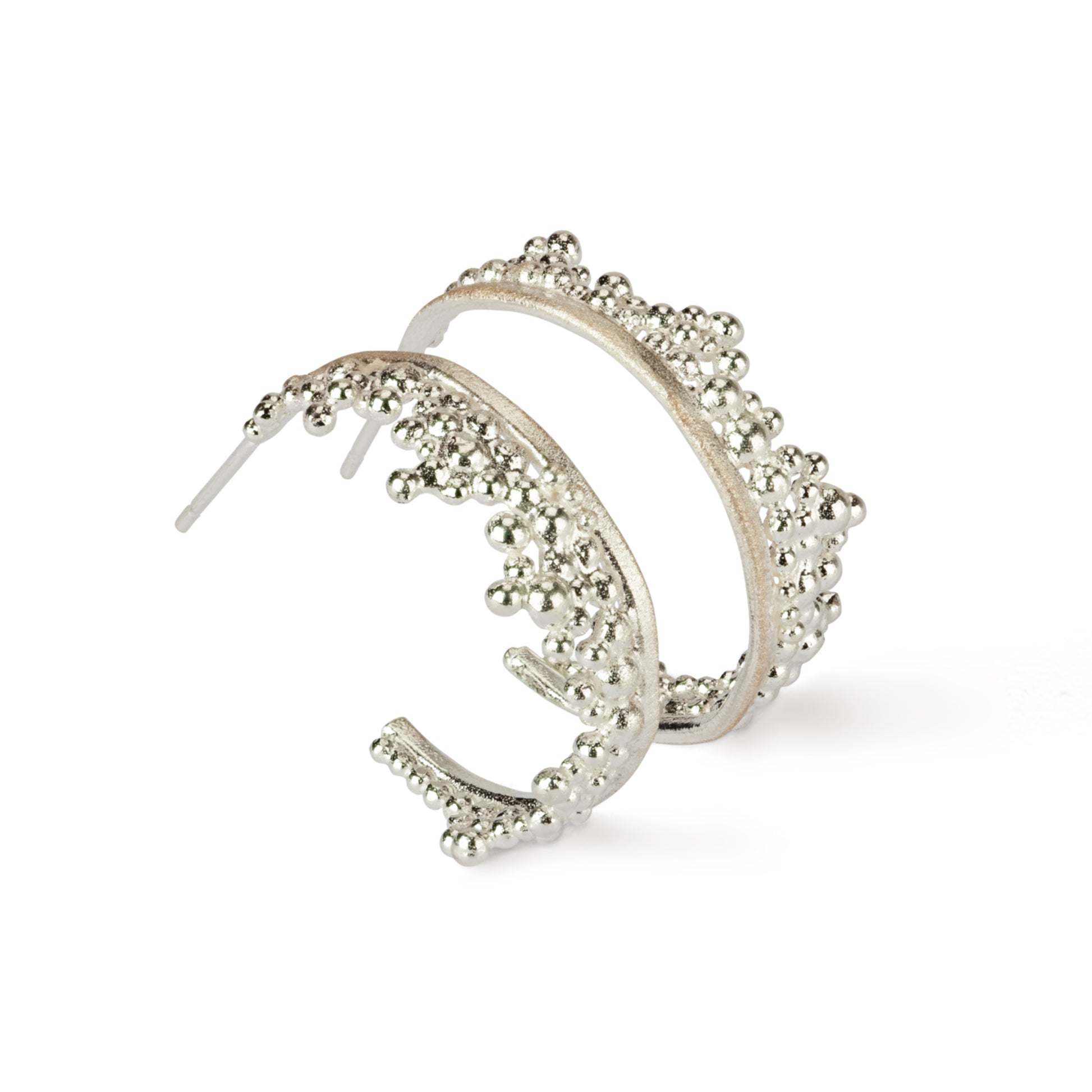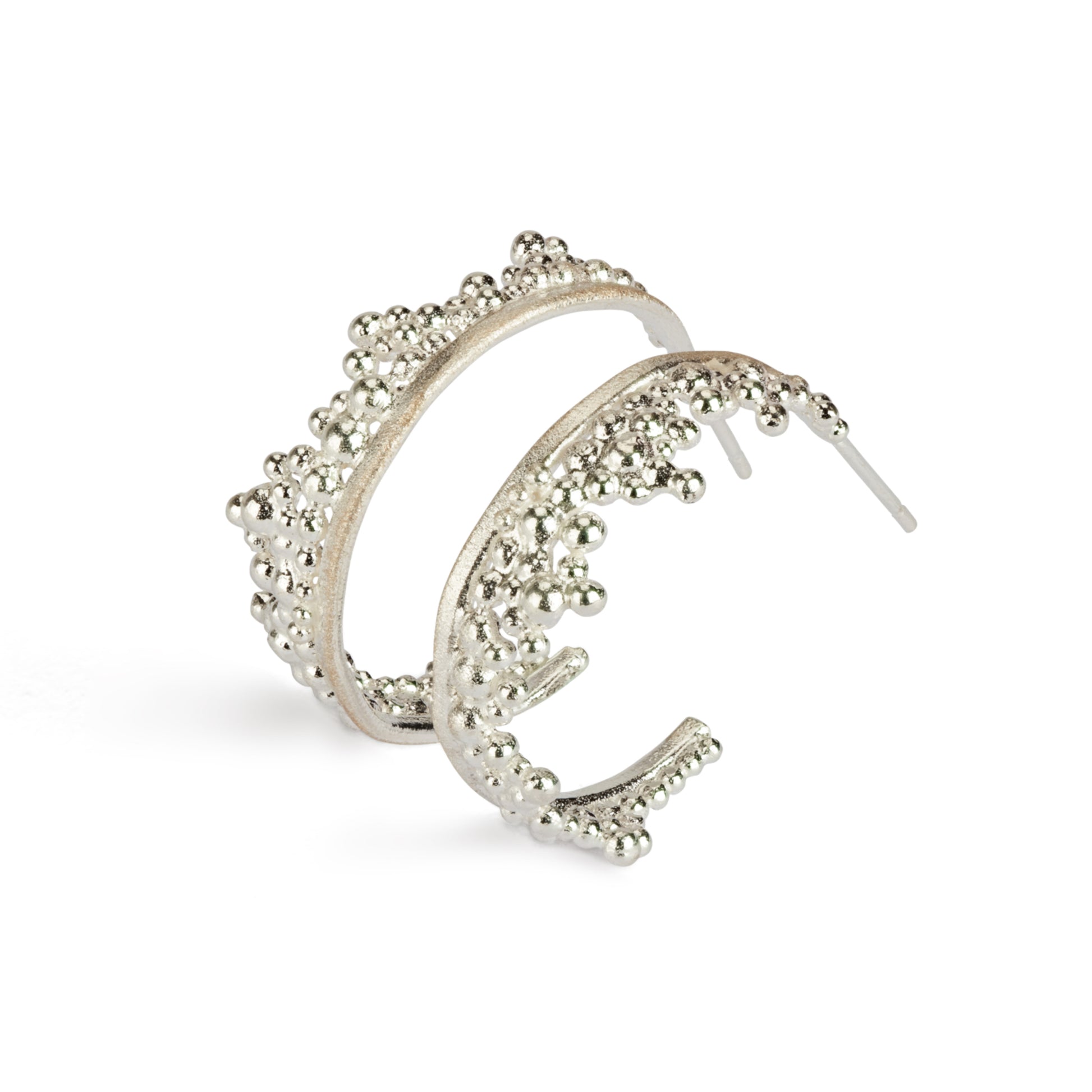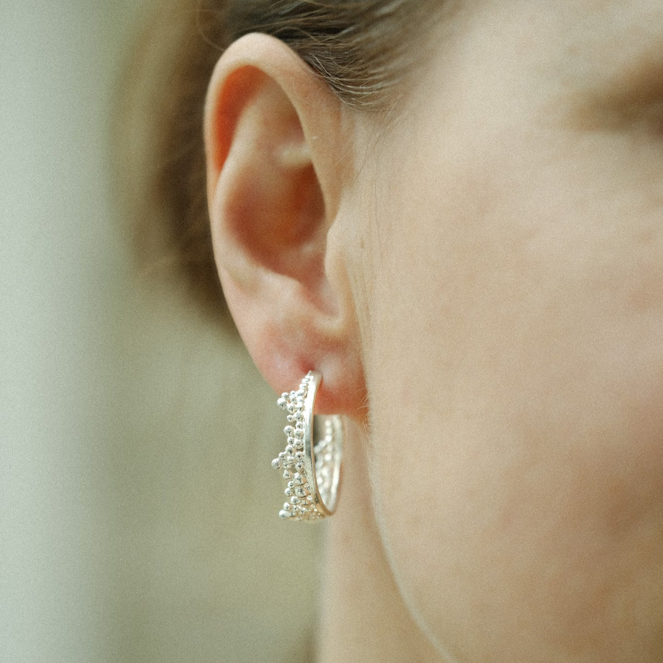 These exquisite silver hoops are shimmering with granulation. Made in sterling silver.