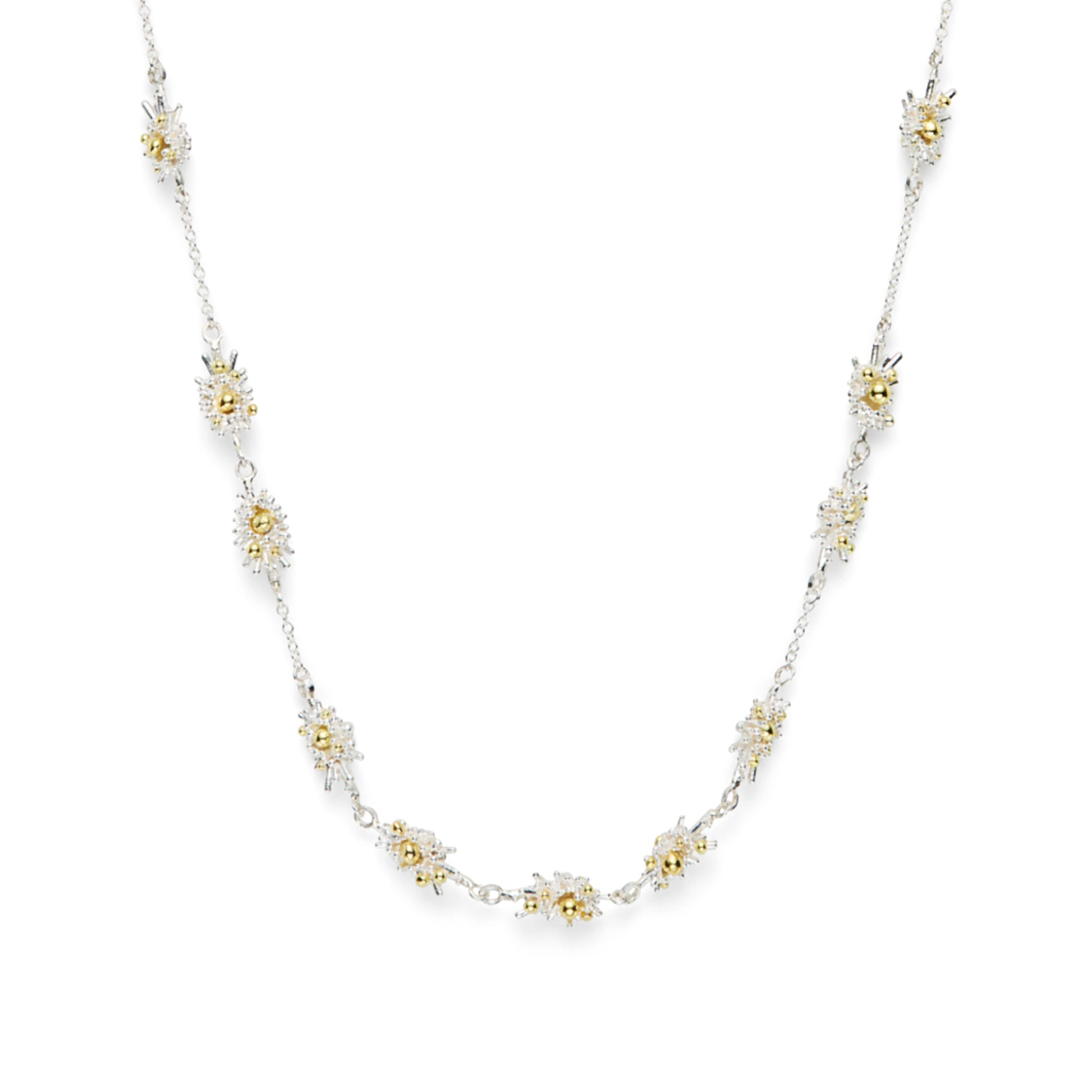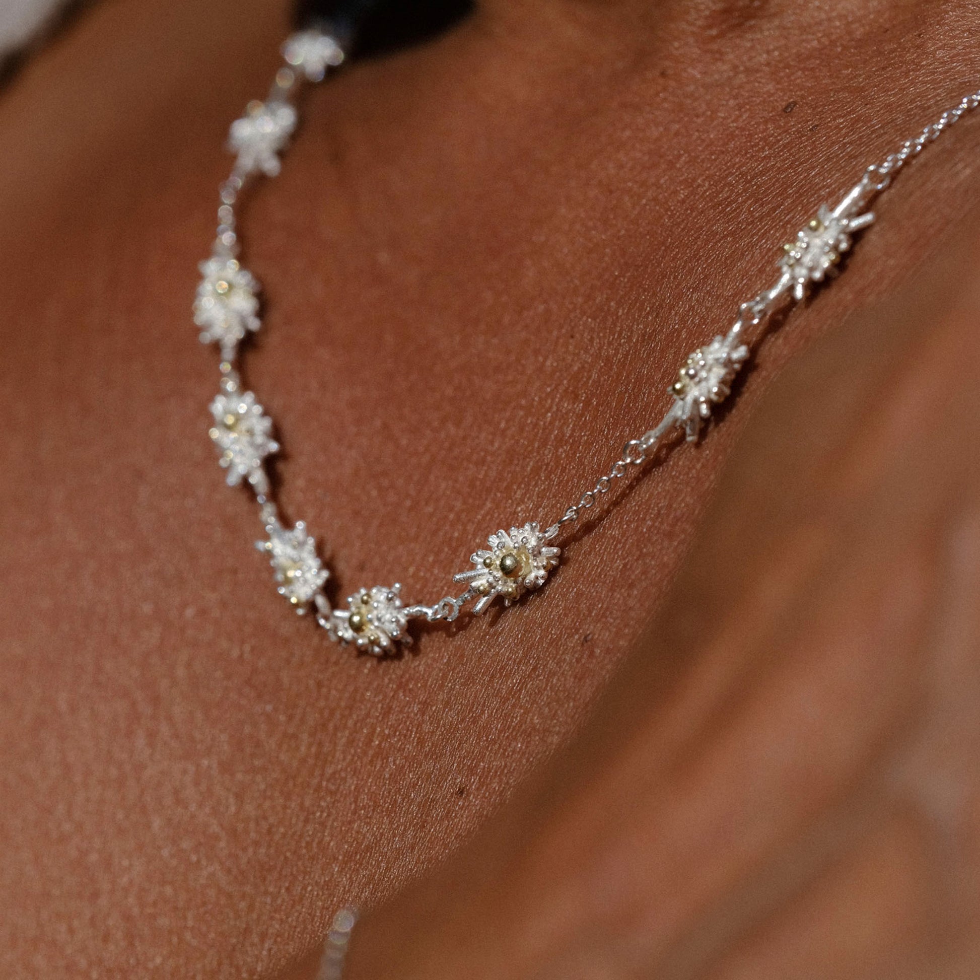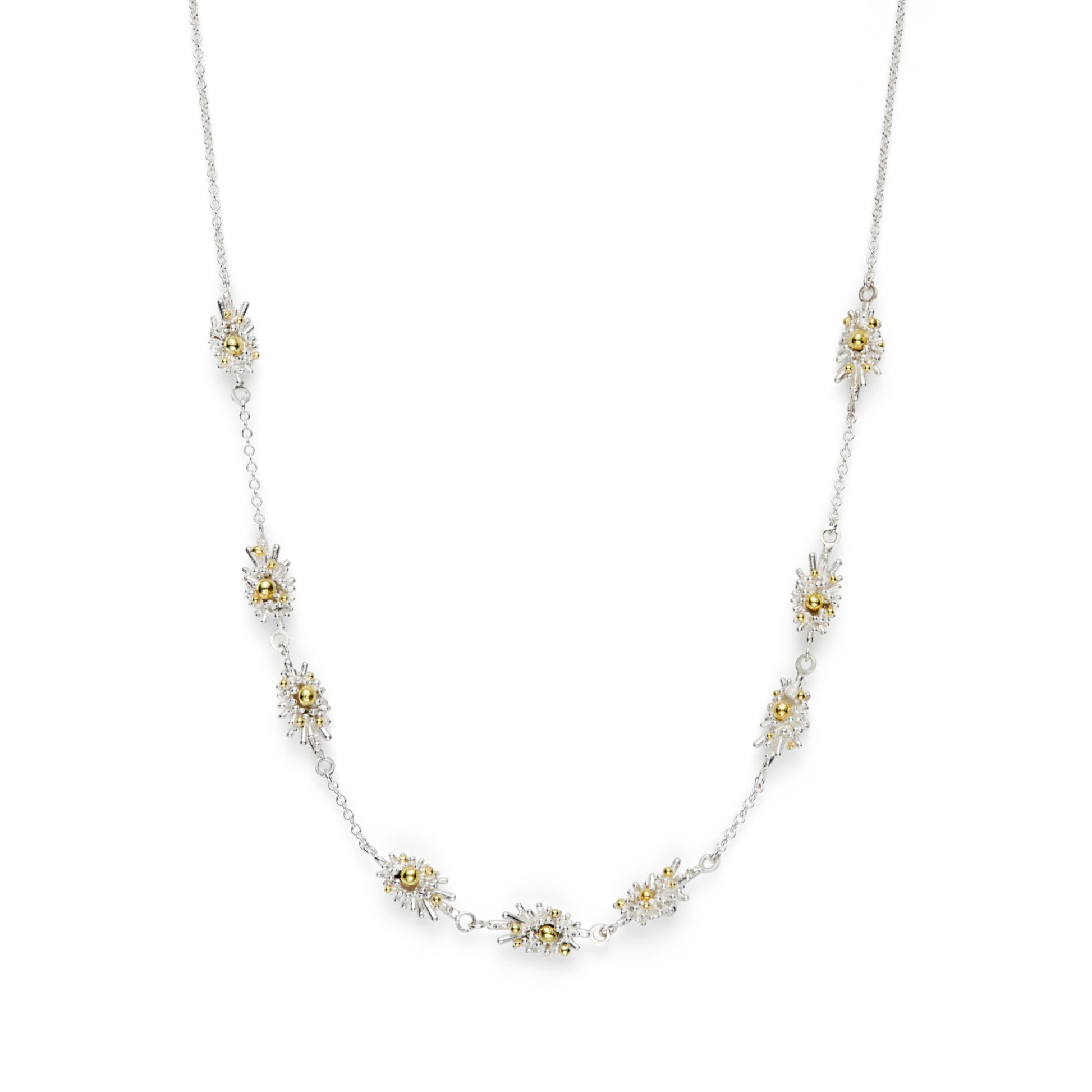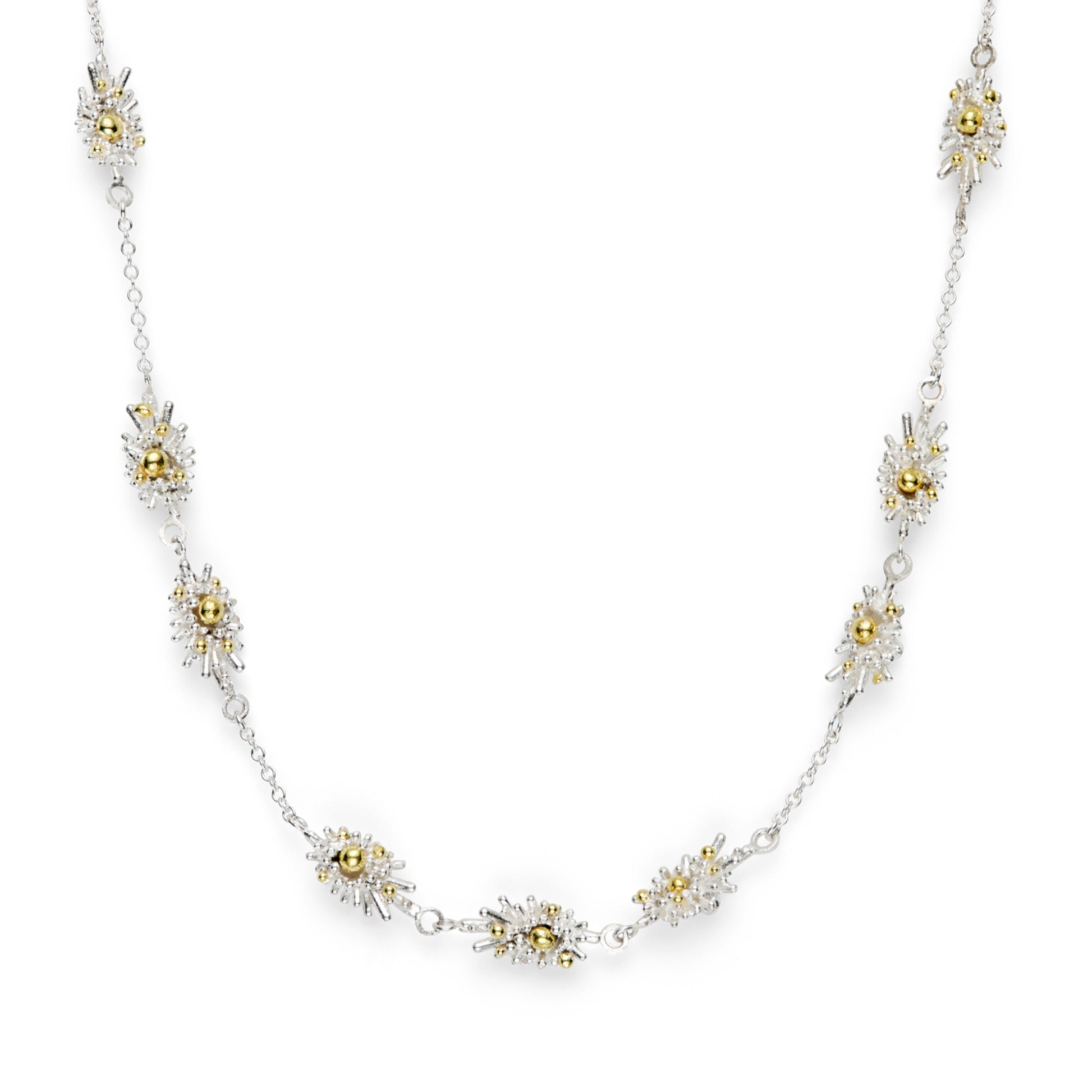 A gorgeous necklace featuring a flow of twenty delicate sea urchin formations -  interspersed with contrasting silver and 18ct gold granulation.