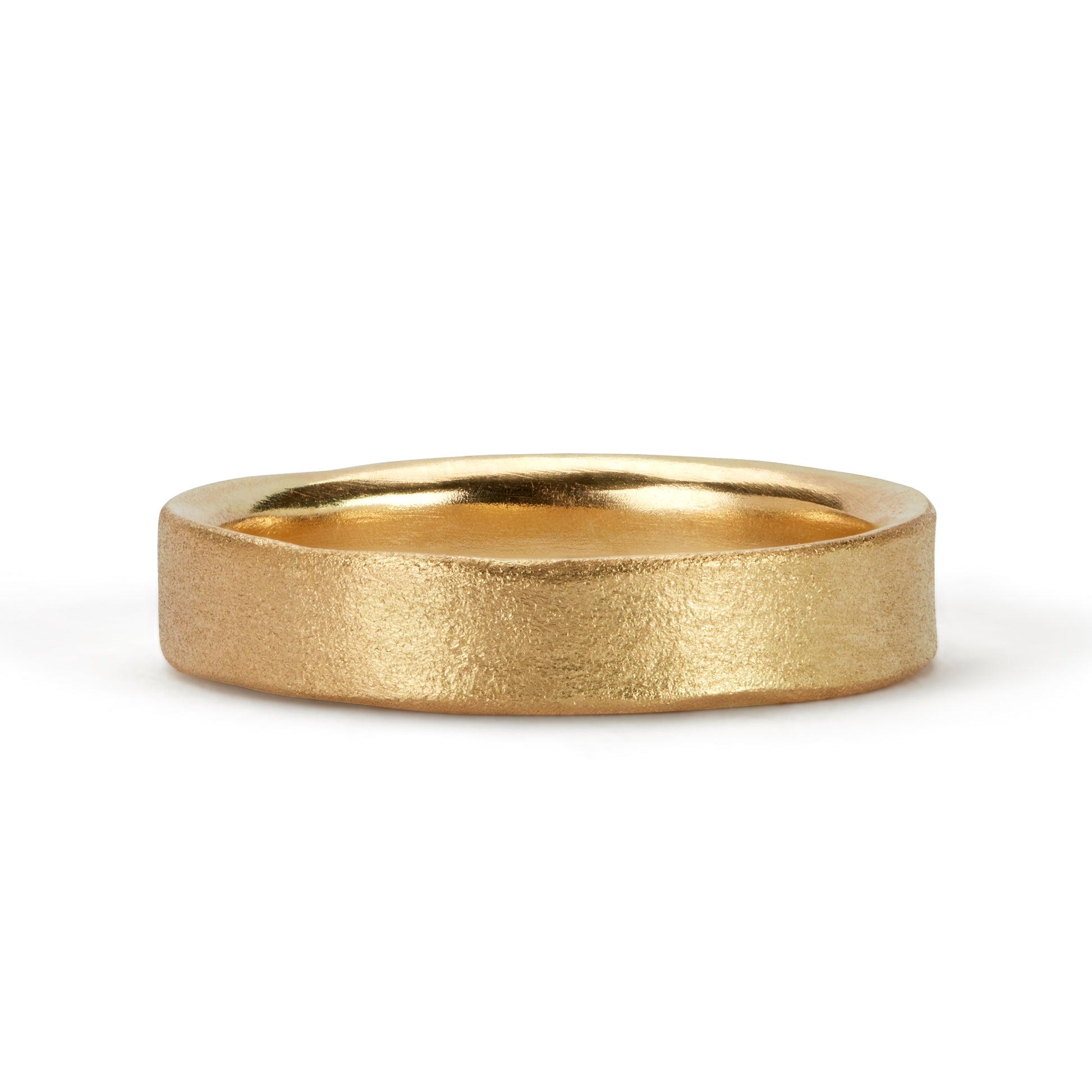 This beautiful hand forged ring is made in 18ct yellow gold, with a soft matt texture.  This ring is available in a variety of widths and materials.