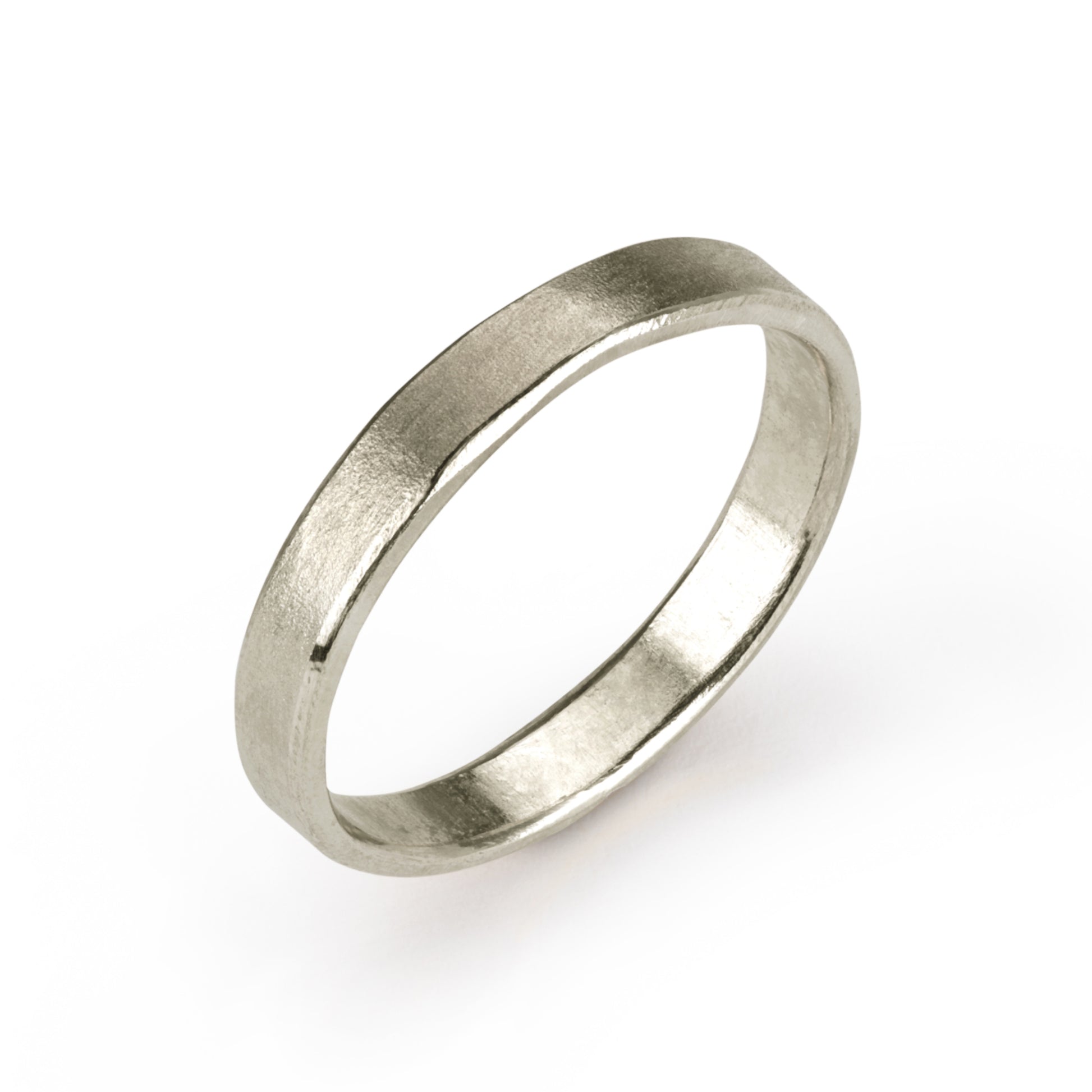 This beautiful hand forged ring is made in 9ct white gold, with a soft matt texture.  This ring is available in a variety of widths and materials.